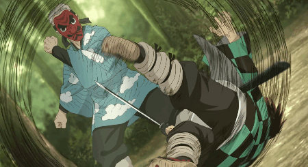 a) 탄지로 : (검을 휘두르며) 991! 992!