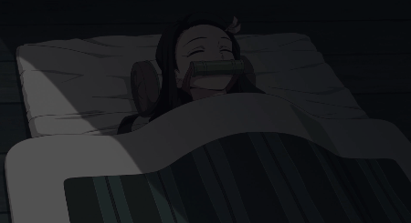 a) 탄지로 : (졸린 걸 참으며) 네즈코, 오빠 열심히 할게.