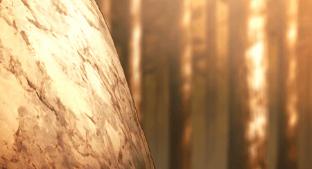 (탄지로, 검을 들고 바위를 향해 달려든다.)