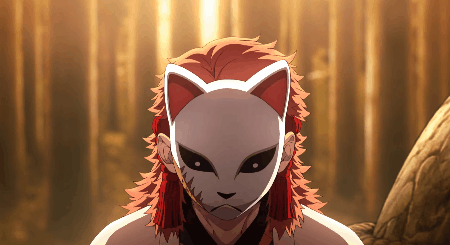 a) 탄지로 : (속으로, 흠칫) 어느 틈에...! 냄새가 안 나. 여우 가면...?