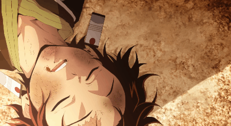 a) 탄지로 : (N) 내가 이겼을 때 사비토는 웃었다. 우는 듯한, 기쁜 듯한, 안심한 듯한 미소였다.