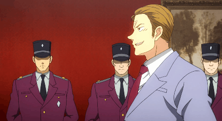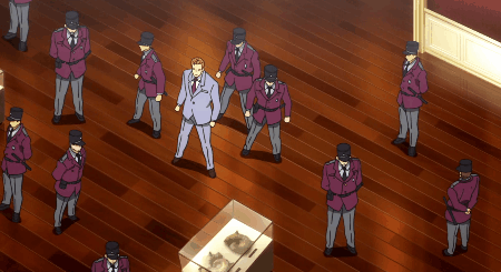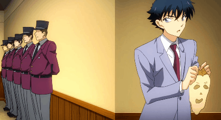a)b)c)d) 경비들 : (다급히 달려가며) 키드가 나타났다-!!! / 쫓아라-!!!