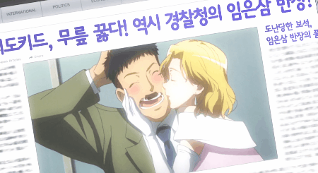 (찰칵! 임은삼 반장의 활약 기사. 앤 공주가 임은삼에게 볼 뽀뽀를 하고 있는 사진.)