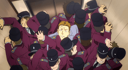 a)b)c)d) 경찰들 : (모이는) 이야아아아앗-! 전원 별관 앞으로-!!! /