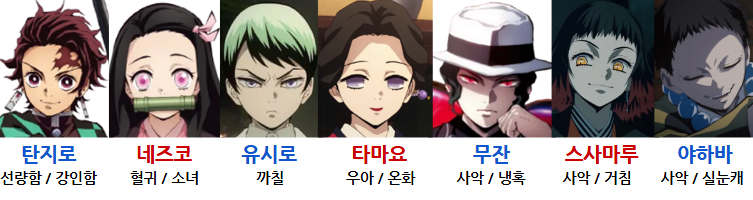 여 - z) 타마요, 네즈코, 스사마루, 무잔 아내, 무잔 딸, 행인2, 취객2