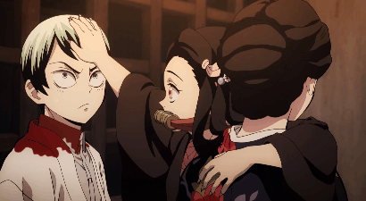a) 탄지로 : (속으로, 안타까운) 작은 어린애 같아. 수도 없이 사람을 죽였을 텐데도...