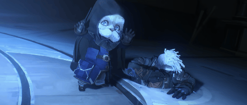 (징크스, 세비카의 기계팔을 고쳤다.)