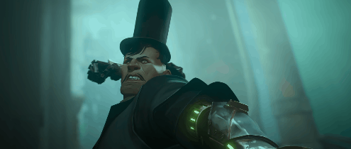 (몰래 지하 구멍으로 들어오던 하이머딩거에게 무기를 겨누는 제이스.)