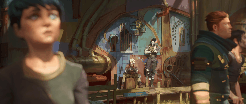 d) 제이스 : 저는 또… (말하려다 멈칫, 화난) 왜 제 연구소에 침입하신 거예요? 쟨 또 누구죠?