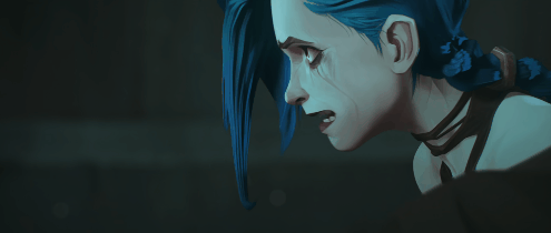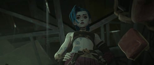 (드라이버가 징크스의 머리카락에 박힌다.)