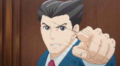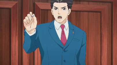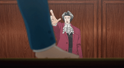 b) 미츠루기 : 내가 하나 가르쳐주마. 법정에서 통하는 건 언제나 증거물뿐이다. 알고나 덤벼라!!
