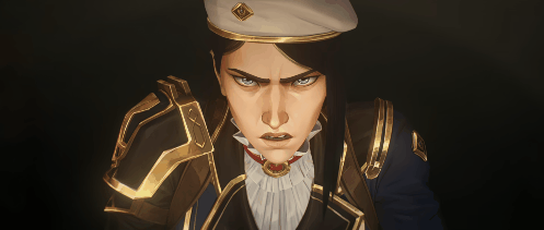 b) 케이틀린 : 저리 비켜! (징크스를 겨눈 채)