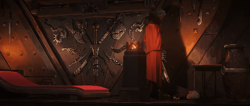 (케이틀린, 키라먼가의 열쇠를 사용하여 가문의 서류를 정독한다.)