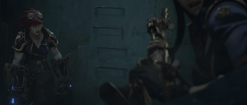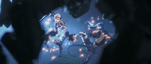 (한편, 징크스&바이, 세비카&케이틀린 간 싸움이 벌어진다.)