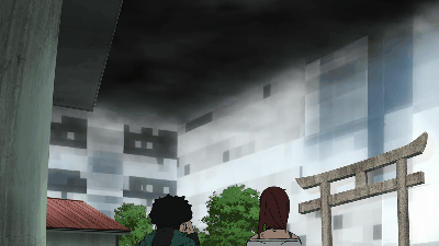 (켄이 모모의 집으로 들어서려는 순간, 결계가 켄을 불태운다.)