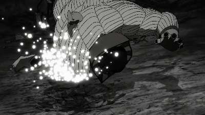 (플랫우즈가 쓰러지며 손으로 땅을 짚자 손이 증발한다.)