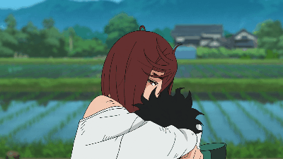 (모모가 기절해버리자 저주를 통제하는 힘이 없어져 켄이 터보 할멈으로 변하기 시작한다.)