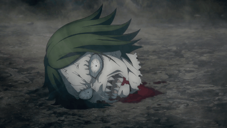 a) 탄지로 : (사색, 덜덜 호) / 으아아아앗! (혈귀의 시체를 옆으로 밀어낸다.)