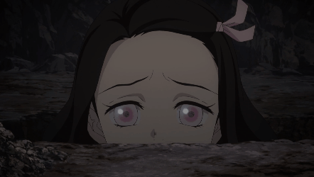 a) 탄지로 : (속으로, 걱정) 네즈코... 구멍을 판 거야...? 동생이 두더지처럼 변해버렸어.